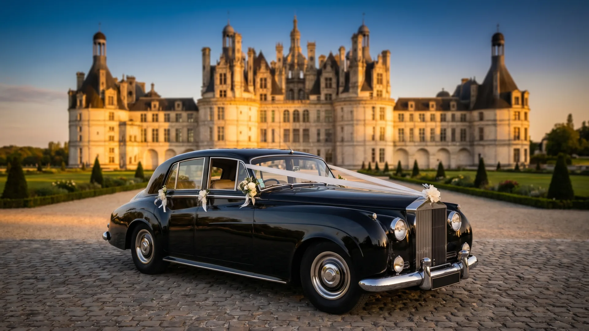 Nous acceptons volontiers les décorations discrètes et non abimantes (rubans, fleurs fixées par ventouses) fournies par vos soins ou votre décorateur. Nous vous conseillons pour trouver le juste équilibre entre élégance et respect du véhicule.